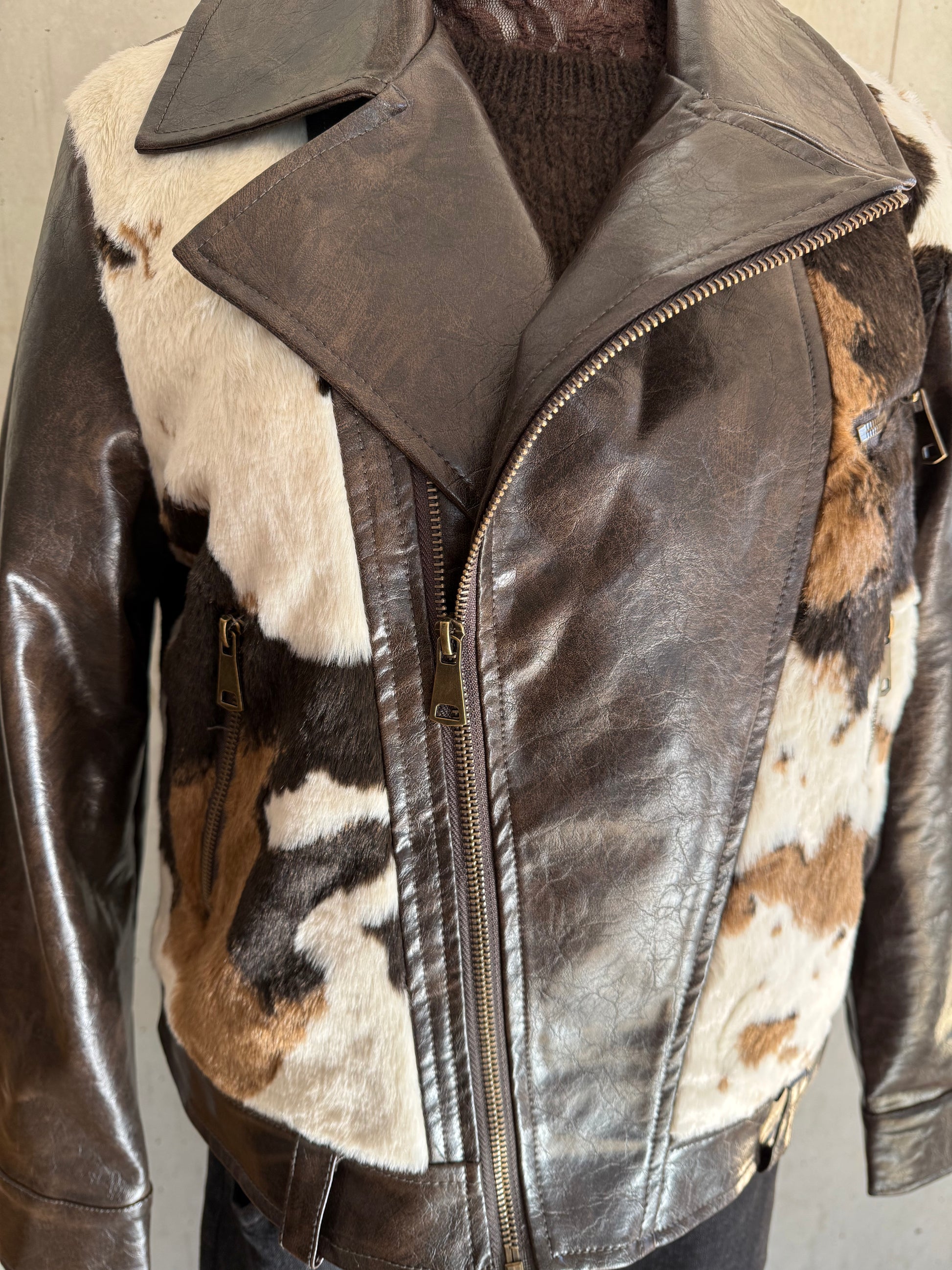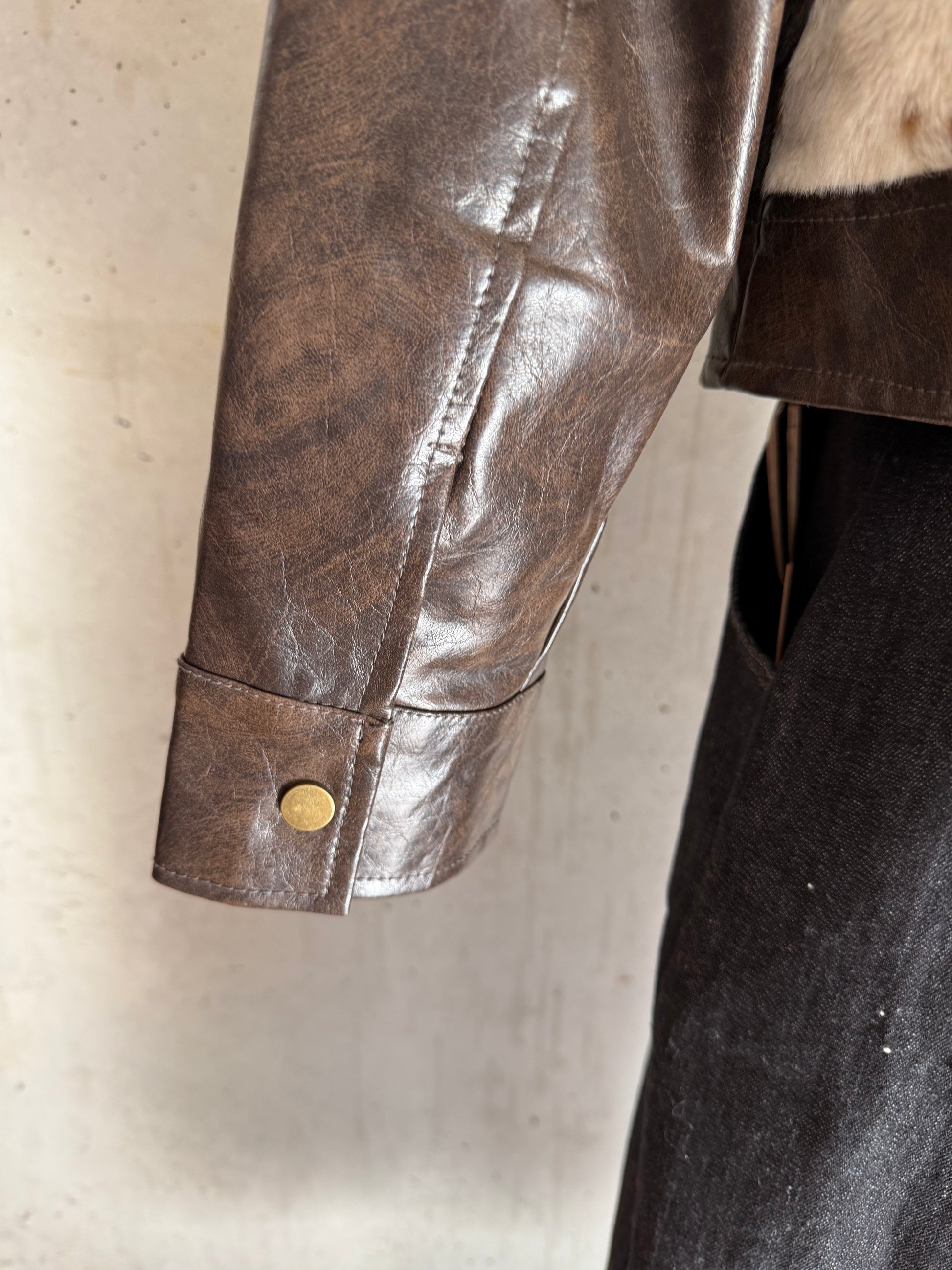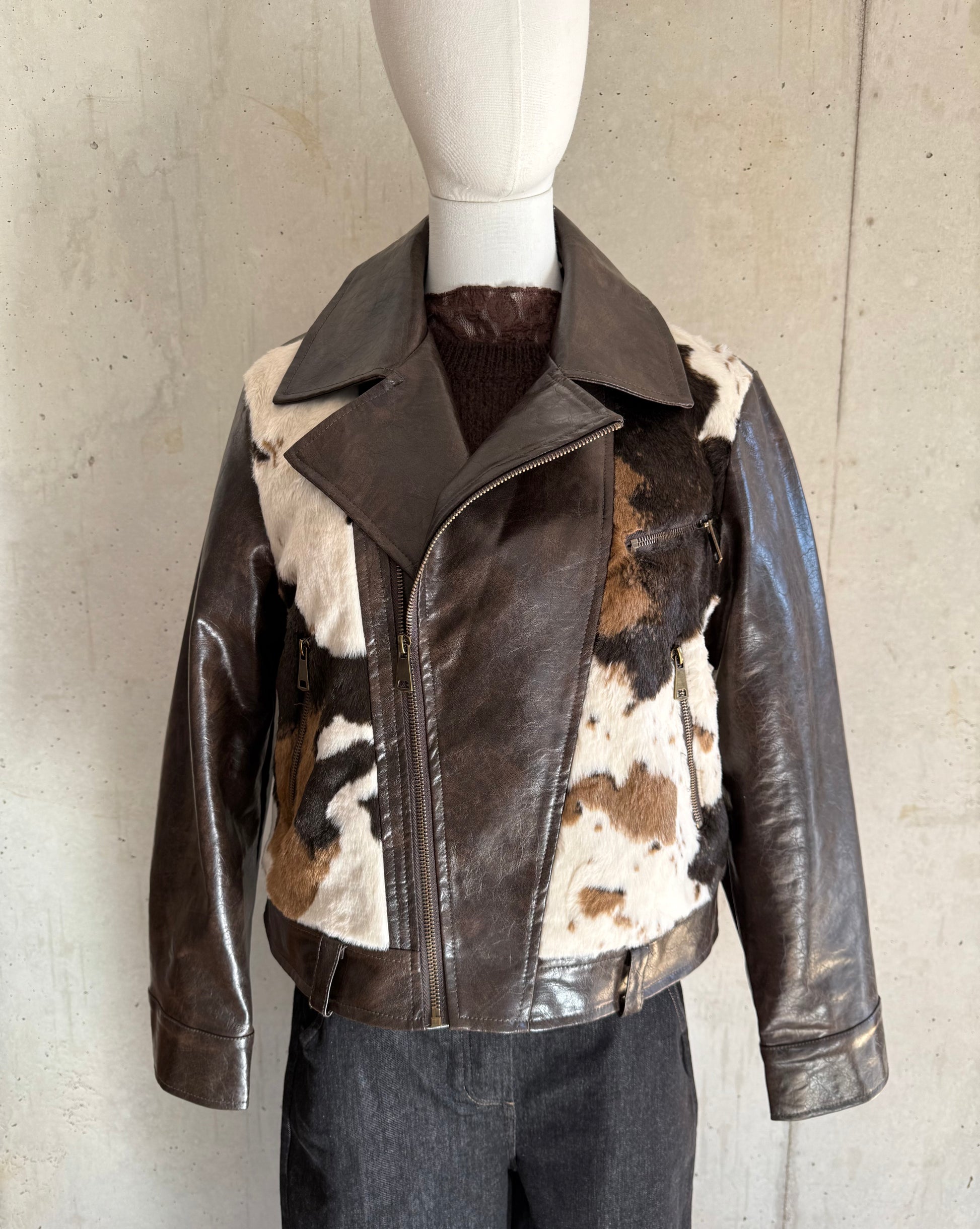 Coole Trendjacke im Bikerstyle mit Kunstfell im angesagten Look. Kunstleder in einem schönen Schokobraun. Toll zur Jeans oder zum Rock.