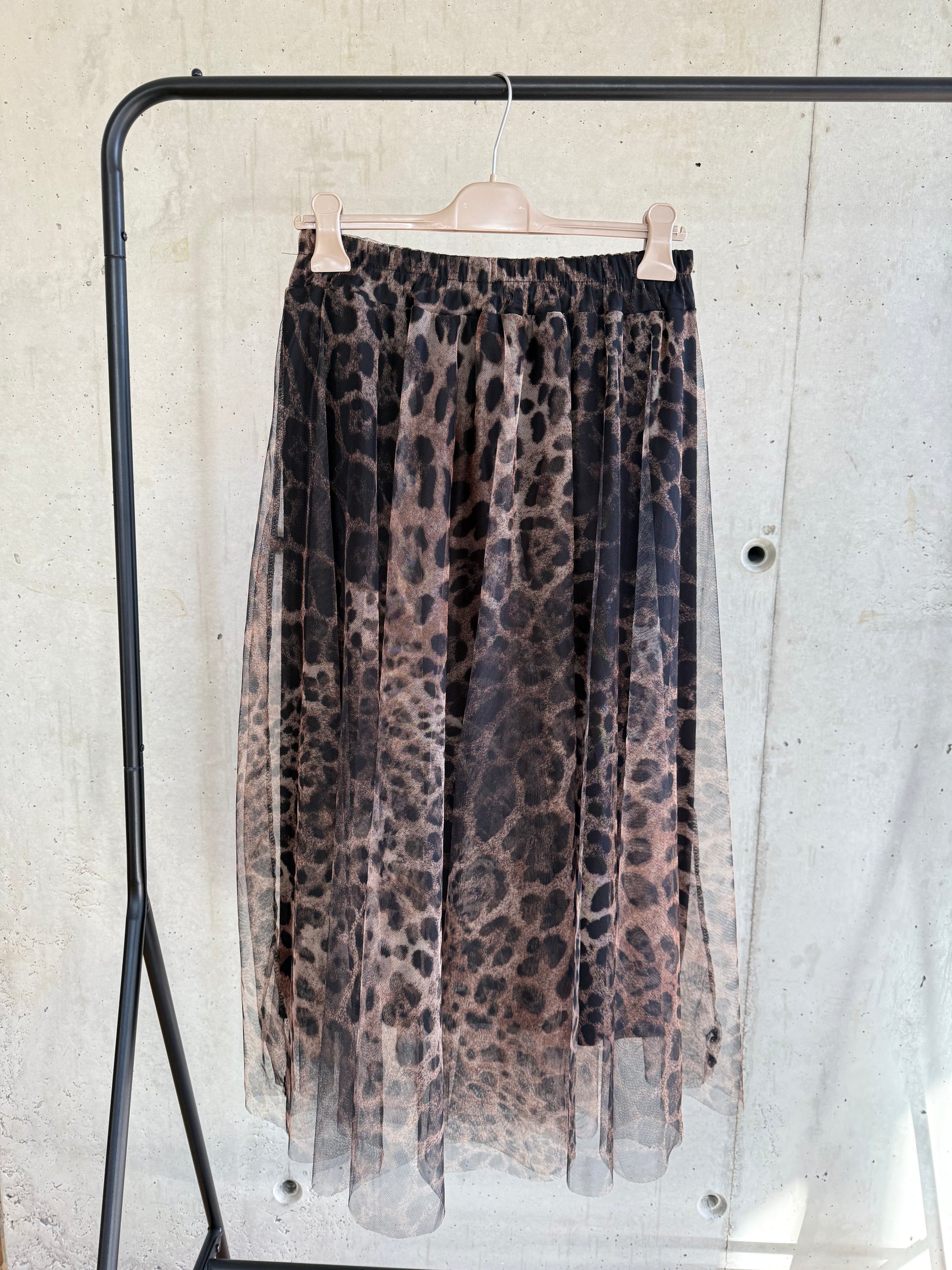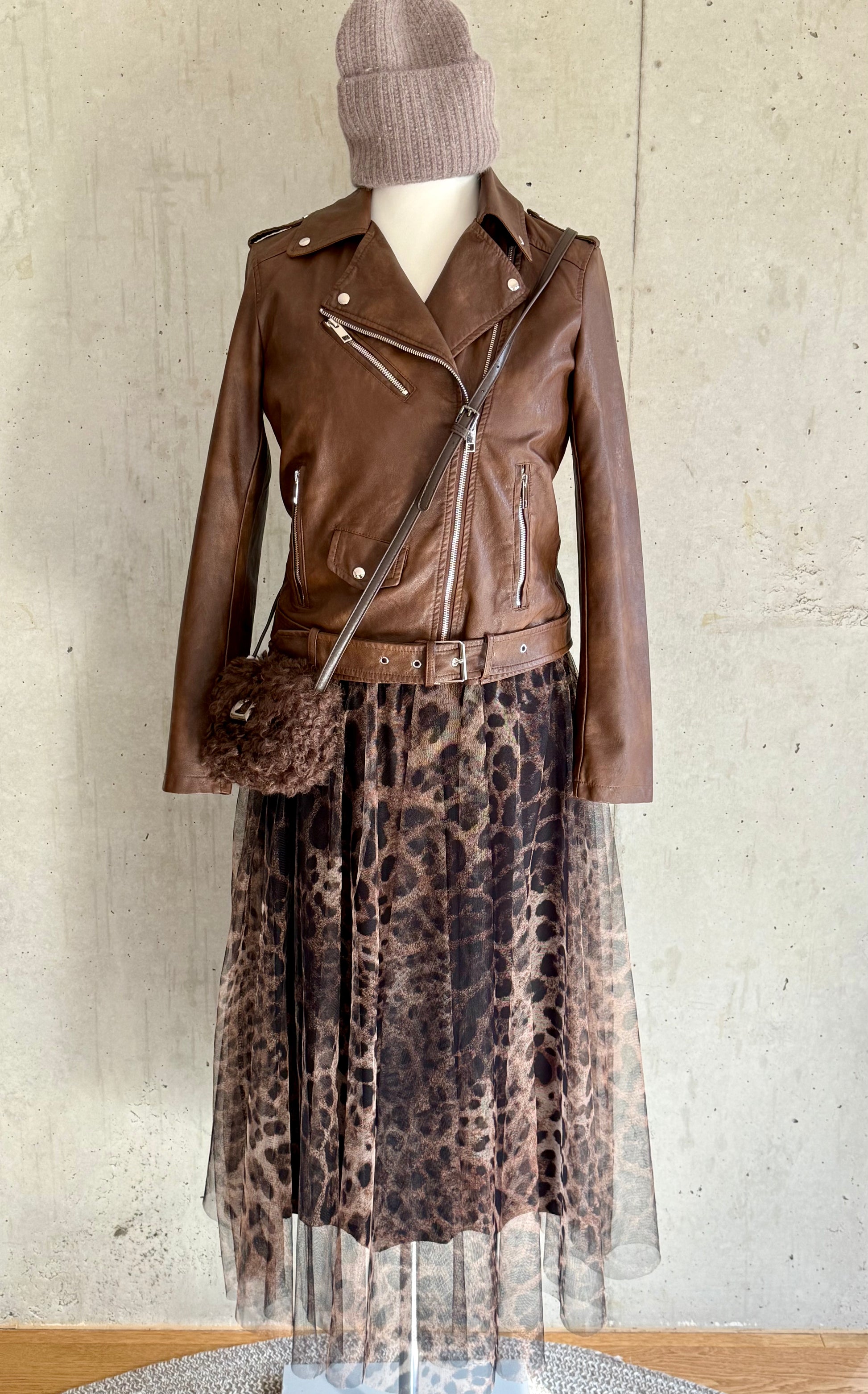 Super Süsser Tüllrock mit Leomuster, mit Gummibund für einen super Tragekomfort. Passend zur Lederjacke oder Strickpulli .